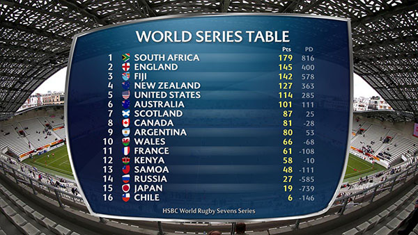 The circuit concludes next weekend at Twickenham. Argentina and Canada are now neck-and-neck with only one point separating them, Canada currently with the slight edge in 8th place. The USA are virtually certain of finishing in 5th overall, one spot higher than the last two seasons and their highest ever placing.