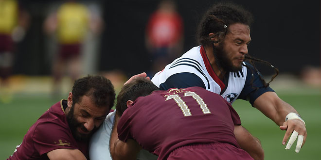 1 Olive Kilifi (17 Huluholo Moungaloa 15′), 2 Joe Taufete’e (16 Peter Malcolm 59′), 3 Dino Waldren (18 Paddy Ryan 53′), 4 Greg Peterson (19 Nate Brakeley 63′), 5 Nick Civetta, 6 Ben Landry (20 Andrew Durutalo 74′), 7 John Quill (21 Tony Lamborn 53′), 8 Samu Manoa, 9 Shaun Davies, 10 AJ MacGinty, 11 Ryan Matyas (22 Nate Augspurger 78′), 12 Bryce Campbell (23 Will Magie 78′), 13 Marcel Brache, 14 Mike Te’o, 15 Blaine Scully (capt.)
