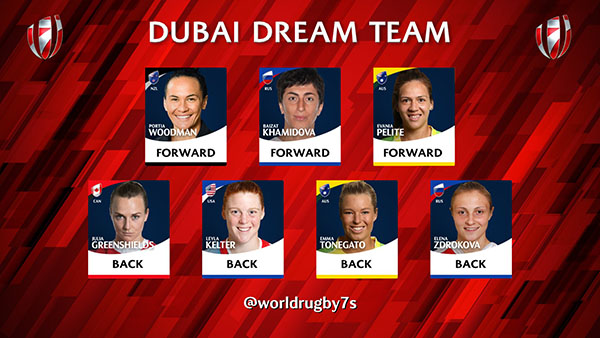 Cup-winning Australian duo Evania Pelite and Emma Tonegato each earned selection, as did two players from the Bronze-winning Russian team – towering forward Baizat Khamidova and speedy winger Elena Zdrokova. Rounding out the side is the tournament’s top try scorer, New Zealand’s Portia Woodman.