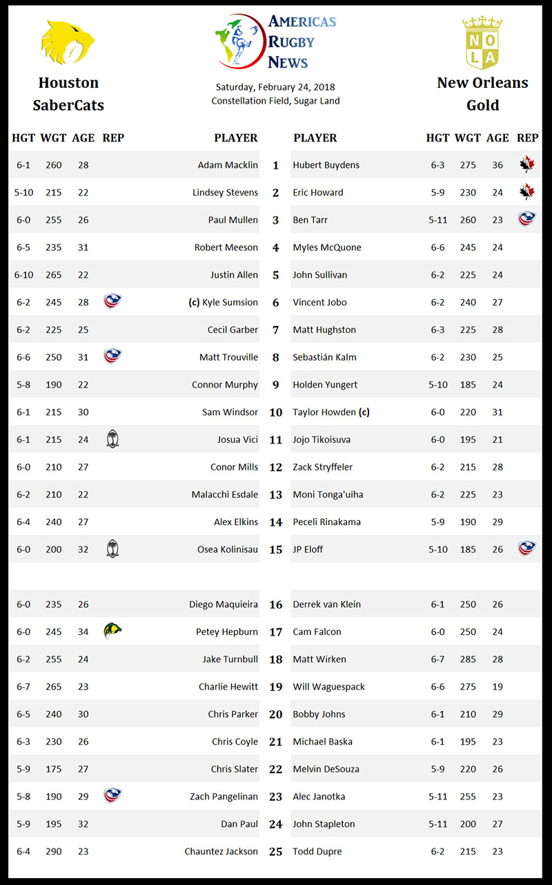 History will be made at Constellation Field on Saturday evening when two Major League Rugby sides take the pitch opposite each other for the first time. The Houston SaberCats host the New Orleans Gold in preseason action with both offering virtually full strength rosters and extended benches that see 25 from each team included.