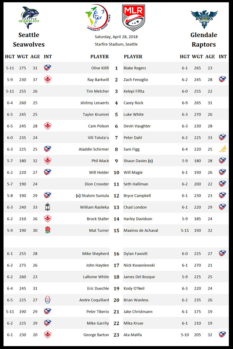 It’s only Week 2 of the inaugural Major League Rugby season and fans are already being treated to heavyweight title belt. After their scrum drove the Legion back to San Diego with their tails between their legs, the Seattle Seawolves will face a step up in competition on Saturday evening when the Glendale Raptors arrive at Starfire Stadium.