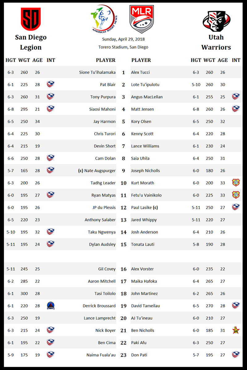 The third game of Major League Rugby‘s second weekend takes place at Torero Stadium on Sunday where the San Diego Legion will host the Utah Warriors. San Diego took a beating against Seattle in their season opener last weekend while the Warriors are making their regular season debut.