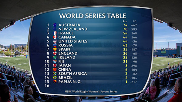 A thrilling Quarter Final between the two North American sides was the highlight of Day Two. Alev Kelter scored twice two help the USA to a 21-12 lead at the break, but Bianca Farella replied with her own double in the second half to nudge Canada ahead. It was Naya Tapper who saved the day for the USA with her last minute try enough to put the USA into the Semis and it was heartbreak for the hosts.