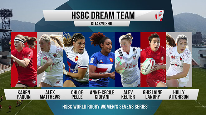 Three North American players have been included in the official HSBC Dream Team for the Kitakyushu Sevens. Cup Final winners Canada contributed captain Ghislaine Landry and Karen Paquin, with Alev Kelter the only selection from the Bronze-winning USA side.