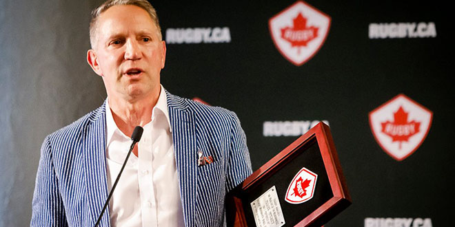 Three former men’s senior team legends were formally inducted into the Rugby Canada Hall of Fame. 1987 World Cup captain Hans de Goede, 1991 World Cup captain Mark Wyatt, and three-time World Cup select Scott Stewart. Sevens and XVs standout Julie Foster, herself a veteran of three World Cups, was the lone women’s inductee.