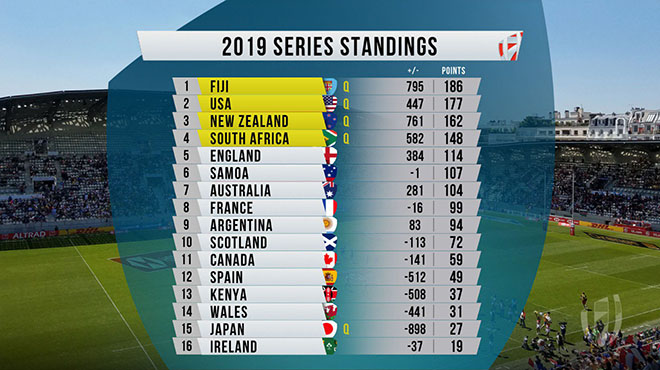 Fiji won their 5th event of the season in Paris to claim the overall 2018-19 HSBC Sevens Series title on Sunday. The deciding match came in the Cup Semi Finals against the USA where the Fijians proved a class apart, winning 33-14 to clinch top spot. It’s the fourth World Series title for Fiji, who return to the top after back-to-back titles for South Africa.