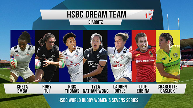 Three Women’s Eagles have been named in the official HSBC Dream Team following the USA’s historic Cup Final victory in Biarritz on Sunday. Cheta Emba, Kristen Thomas, and Lauren Doyle earned their spots in the select side as voted by the commentary team.
