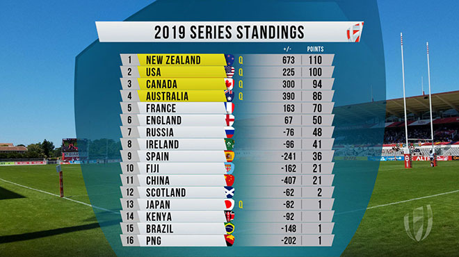 At the other end of the scale, it’s China who drop out of Core status. They tied with Fiji on series points but lose out on scoring differential. Japan won promotion to the expanded 2019-2020 circuit by claiming victory in Hong Kong earlier this year.
