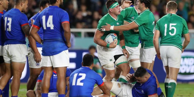 Ireland confirmed themselves in the Quarter Finals of RWC 2019 with a superb 47-5 win over Samoa earlier today in Fukuoka. They secure the win despite being down to 14-men for three quarters of the match.