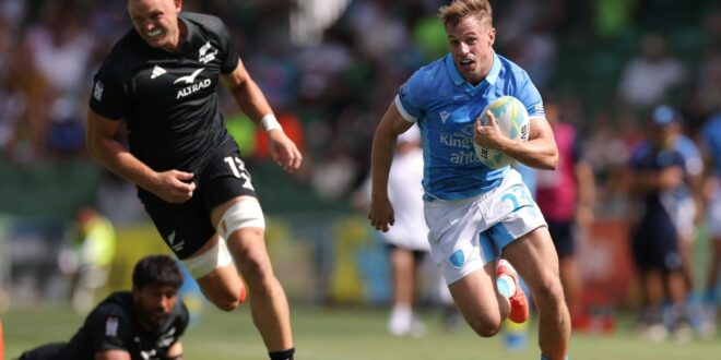 Debutant Ignacio Rodriguez went over in the opening 10 seconds for Uruguay against New Zealand. He scored again late in the first-half. Uruguay went on to win the match 17-12. The historic Uruguayan win over the All Blacks Sevens ensures Uruguay a place in the Final Eight in Perth.